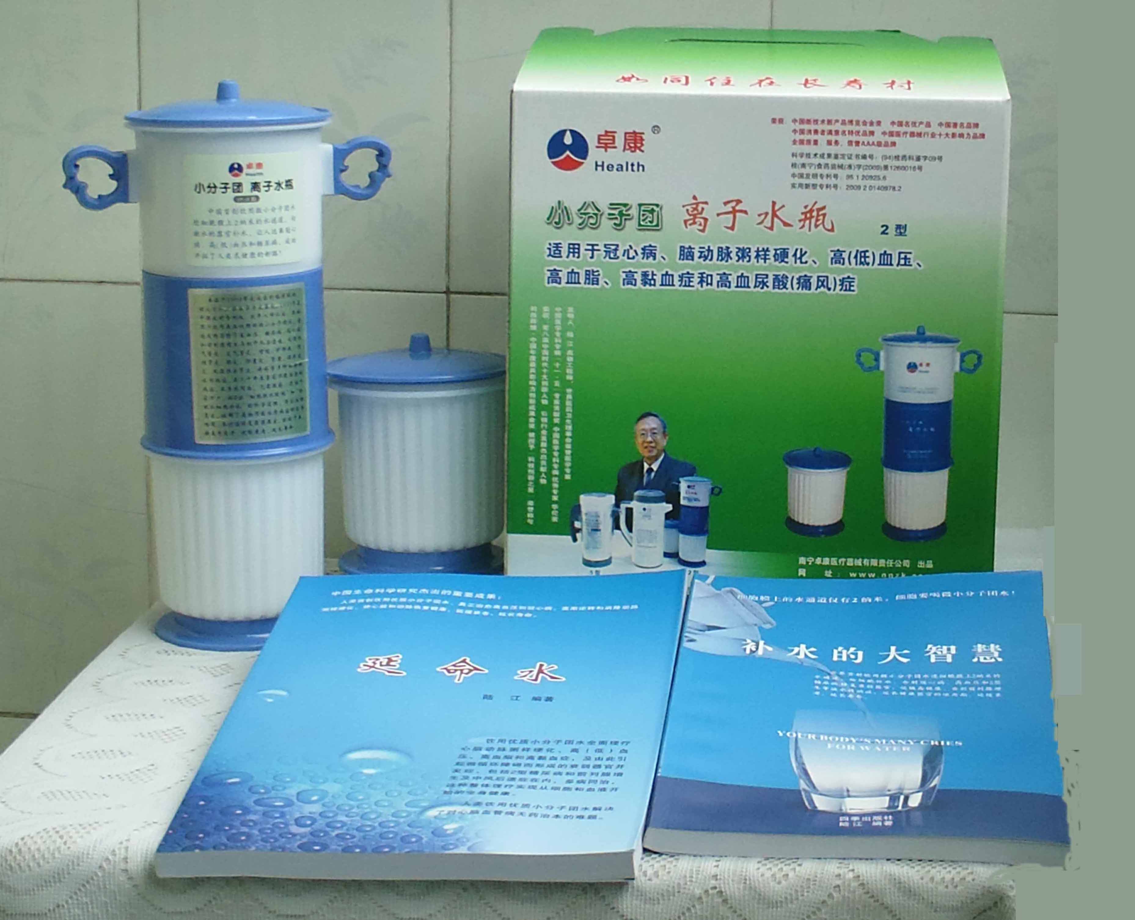 本品大量用戶的使用效果表明,能治愈冠心病、腦動脈硬化、原發(fā)性高(低)血壓、高血脂、高粘血癥、高血尿酸癥(痛風)和2型糖尿病、衰弱器官并發(fā)癥(前列腺增生、腎衰與尿毒癥)及中風后遺癥等療效好。產品配信譽卡。使用壽命30年,不換芯,易清洗。團購優(yōu)惠。從郵局匯款,匯費1%,地址按本頁下方地址、聯(lián)系人寫。從銀行匯款,請點擊[聯(lián)系匯款]欄,從工商銀行匯款,建設銀行、農業(yè)銀行匯款,均免收匯費,匯款后20--30分鐘內發(fā)短信,可用微信轉帳,均免匯費,微信號即手機號13768308380。匯款后,告知你的姓名和地址,我公司聯(lián)系人手機號是:13768308380卓康牌離子水瓶為我公司獨家生產,郵購產品配《補水的大智慧》彩印書一本,另配四季出版社出版的新書《補水的大智慧》一本,并配光盤一張(含央視主持人釆訪陸江的對話視頻)。目前市場和"淘寶網"上有人兜售假冒的偽品,望讀者審察辯別真?zhèn)危旒僬哓飧`假冒本公司的各種證、獲獎獎項、專利號和外包裝盒上的中英文字,包括科技成果的鑒定意見等,請讀者注意防偽。如何識別假貨?已經買了假貨怎么辦?(請點擊[打假掠影][打假掠影])。